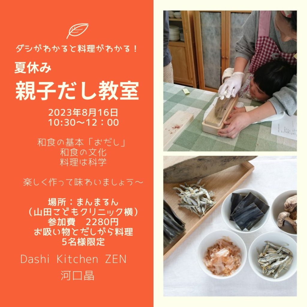 夏休みの宿題にもできる、おだしについてわかる教室です。